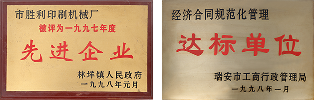 5月公司注冊成立:瑞安市勝利印刷機(jī)械廠
