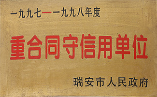 1月被評為“瑞安市重合同守信用單位”